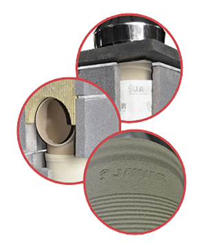 System trójwarstwowy JAWAR UNIWERSAL PLUS daje możliwość podłączenia komina do każdego rodzaju kotła. Duża wytrzymałość na temperatury umożliwia współpracę systemu z kotłami opalanymi paliwami stałymi; kwasoodporność i niska nasiąkliwość umożliwia podłączanie urządzeń gazowych i olejowych (a także modnych ostatnio kotłów na ekogroszek); natomiast idealna szczelność połączeń mufowych rur (na specjalny kit) daje możliwość podłączenia nawet kotłów kondensacyjnych. Dzięki temu użytkownik nie będzie w przyszłości musiał dostosowywać komina po zmianie kotła na inne paliwo.